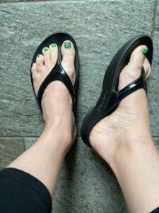 Ever tried OOFOS? I have been a fan of them for years. One day. I saw one of the moms at my kids’ karate school wearing them once and they even LOOKED comfortable. She sang their praises, and I bought them the next day. I have never looked back. I’m on my 4th pair. Once I put them on for the season, they don’t come off much. I am always amazed at how comfortable they are especially on my heals. My daughter’s feet are now my size, so I lost one pair to her. They are currently $69 on Amazon.